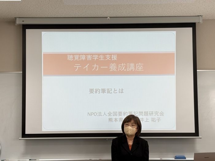 井上祐子先生(全国要約筆記問題研究会熊本県事務局長)より、話の内容をリアルタイムで文字化する際の心構えを学びました 。
